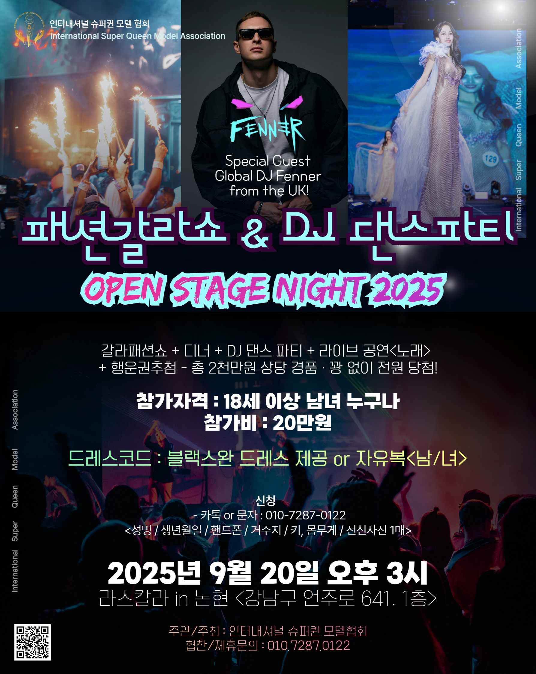 #인터내셔널슈퍼퀸모델협회 #슈퍼퀸 #OpenStageNight2025 #열린무대페스티벌 #DJ페너 #참가자가주인공 #드레스협찬 #블랙스완 #글로벌파티 #런웨이 #인생무대 #모두가스타 #모델페스티벌 #청춘페스티벌 #뮤직페스티벌 #댄스파티 #스타되기 #무대체험 #나도모델