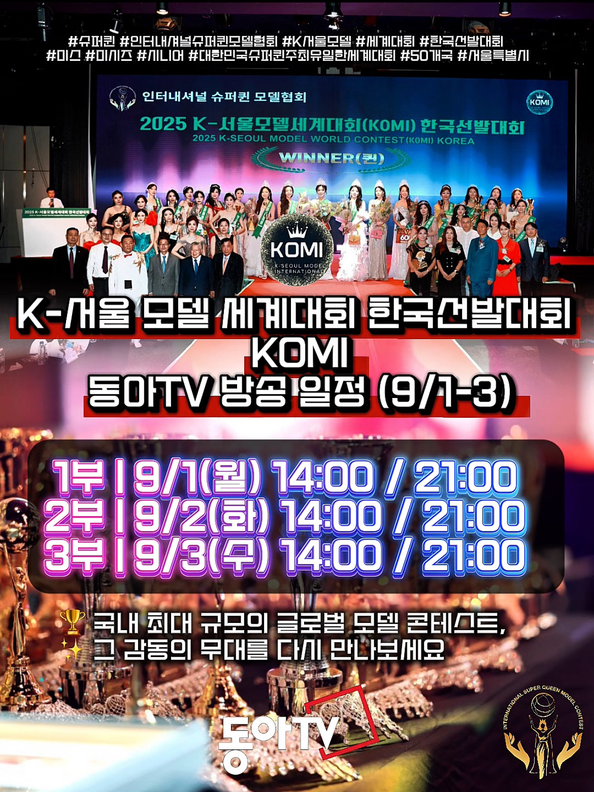 K-서울 모델 세계대회 한국선발대회 동아TV 방송일정/채널 안내 (9/8~14)